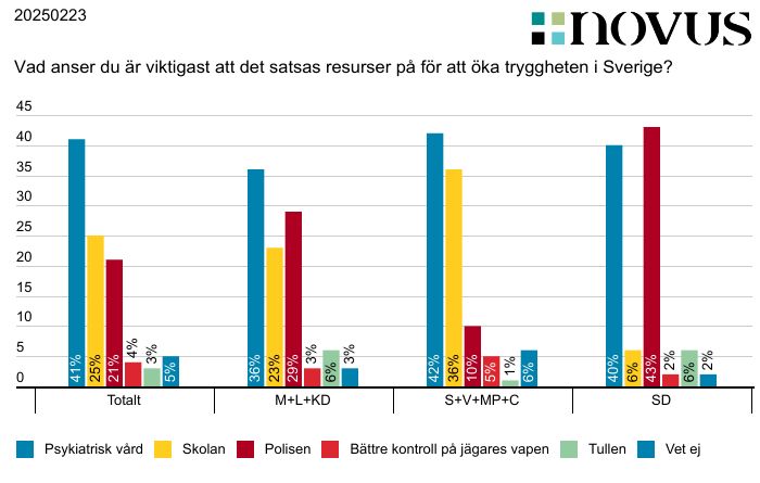 Denna undersökning visar tydligt att svenska folket undrar var samhället befann sig, var instanser som väntas fånga upp människor som är så tydligt psykiskt sjuka att de inte drar sig för att döda andra varit. När den delen misslyckas så är det ju upp till polisen att stoppa pågående eller misstanke till planering av våldsdåd.