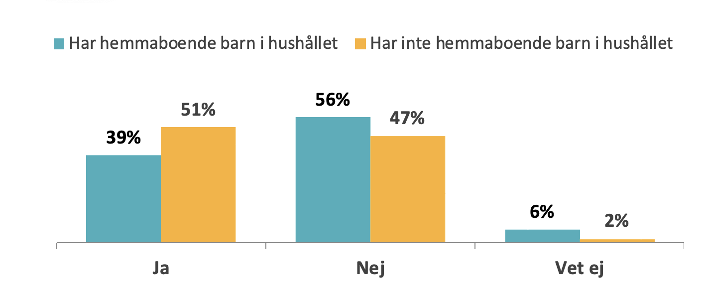 Har hushållet kontanter för att täcka en veckas inköp av livsnödvändiga medel? Fördelat på om de har hemmaboende barn i hushållet eller inte.
