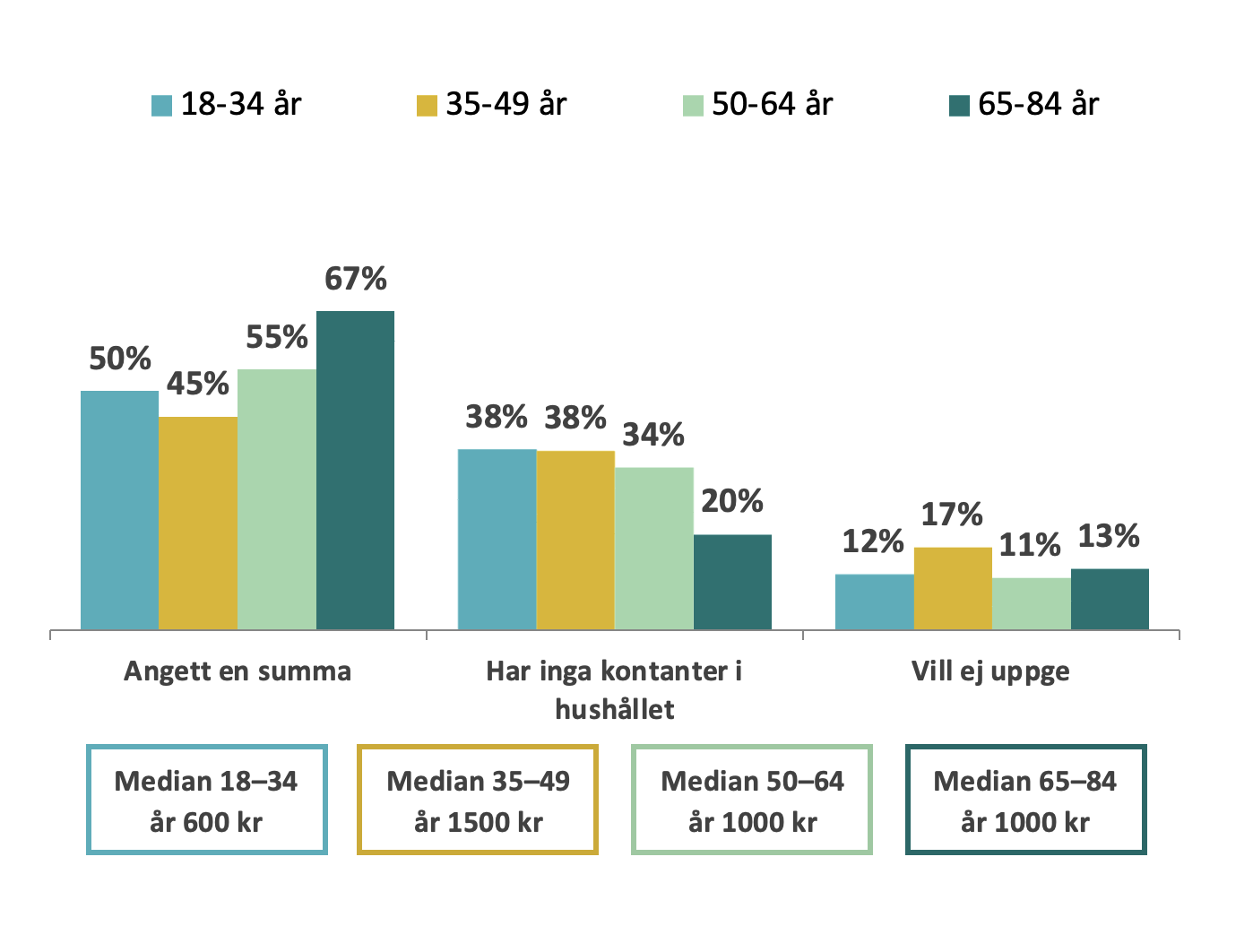 Kontanter per vuxen i hushållet, fördelat på ålder: