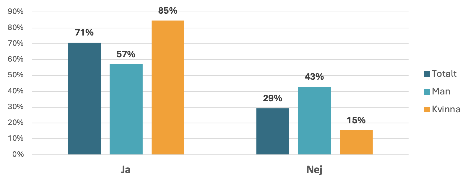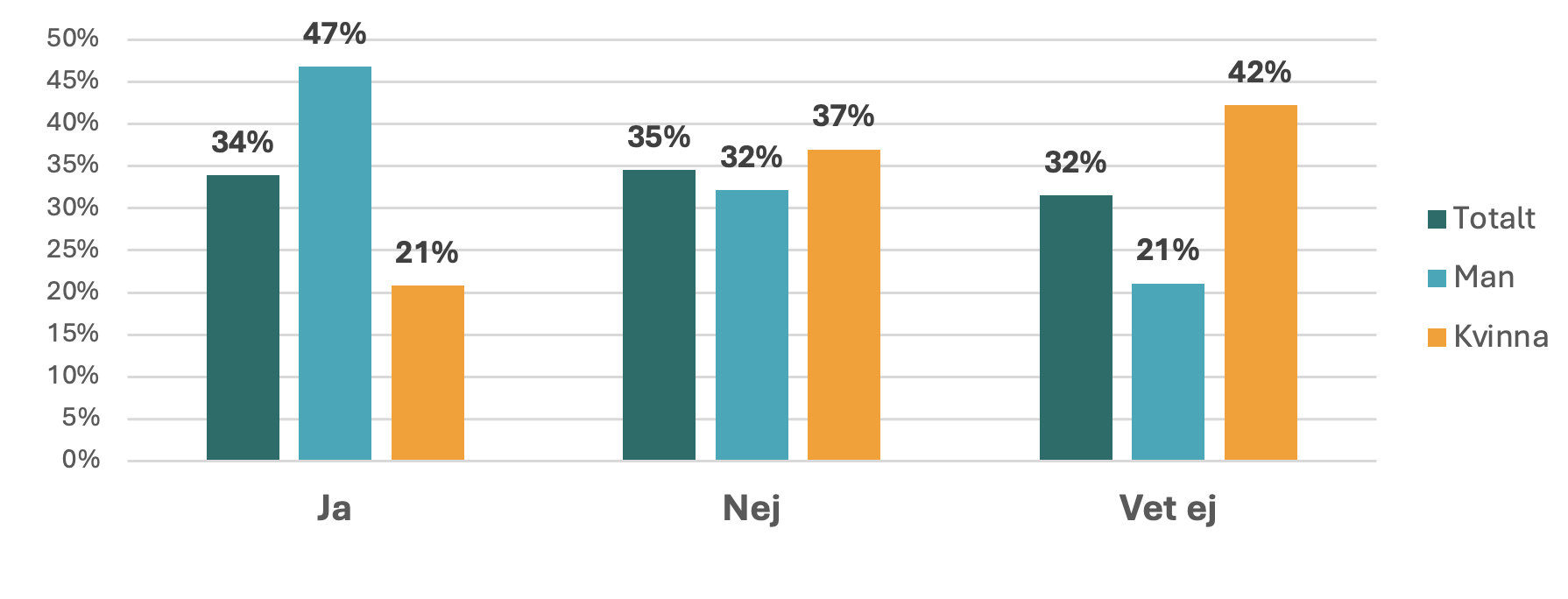 Samma uppdelning mellan könen, män mer positiva, kvinnor mer negativa eller osäkra.
