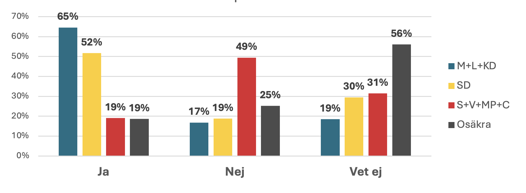 Här är osäkerheten stor, var tredje svensk kan inte svara på frågan, så det är tydligt att man inte hängt med i denna diskussion om vad det skulle innebära. Lika många är för som emot samt som inte kan svara på frågan.