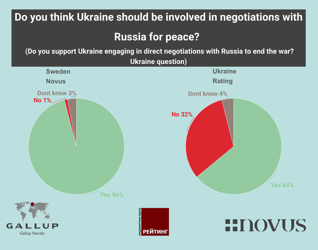 In general the Swedes and Ukrainians agree on this question, worth mentioning is that a smaller population in Ukraine want to ignore negotiations. It is of course much easier to be tough on this issue in Sweden than in Ukraine who have defended their country for a little more than three years now. But looking at the Swedish view on the Ukrainian situation there is no doubt that a big majority of the Swedes are behind them in their fight to defend their country.
