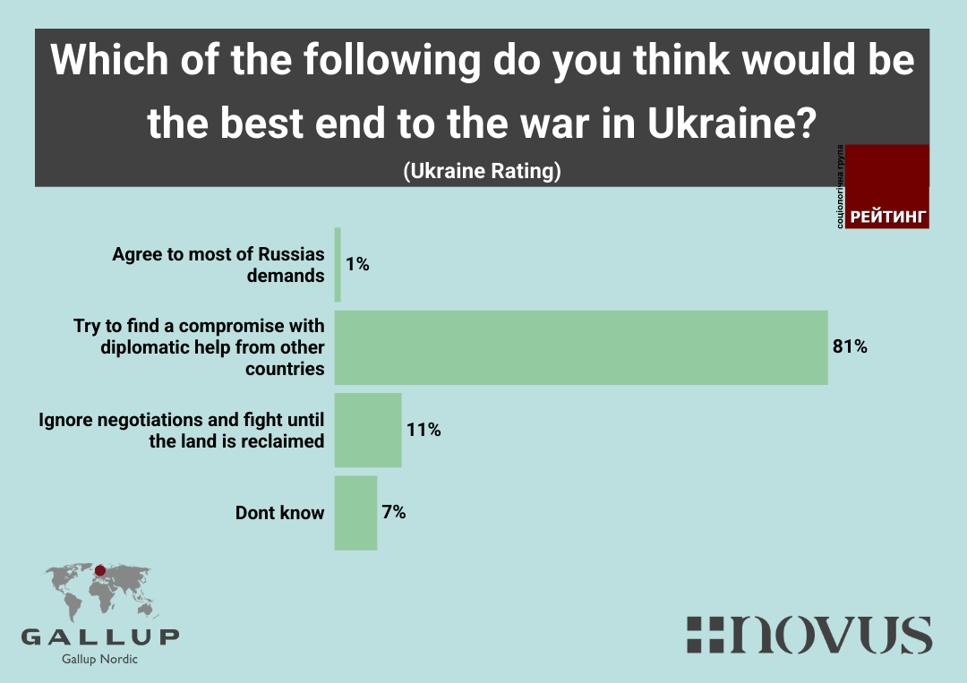 It’s not quite the same question, but broadly comparable, what differs here is that 32% of Ukrainian citizens don’t want to negotiate, but a lot of this probably has to do with not trusting Russia if there aren’t international security guarantees to ensure that Russia maintains its part of the negotiations, and the fact that Russia and Ukraine have been doing negotiations that then have been broken by Russia.