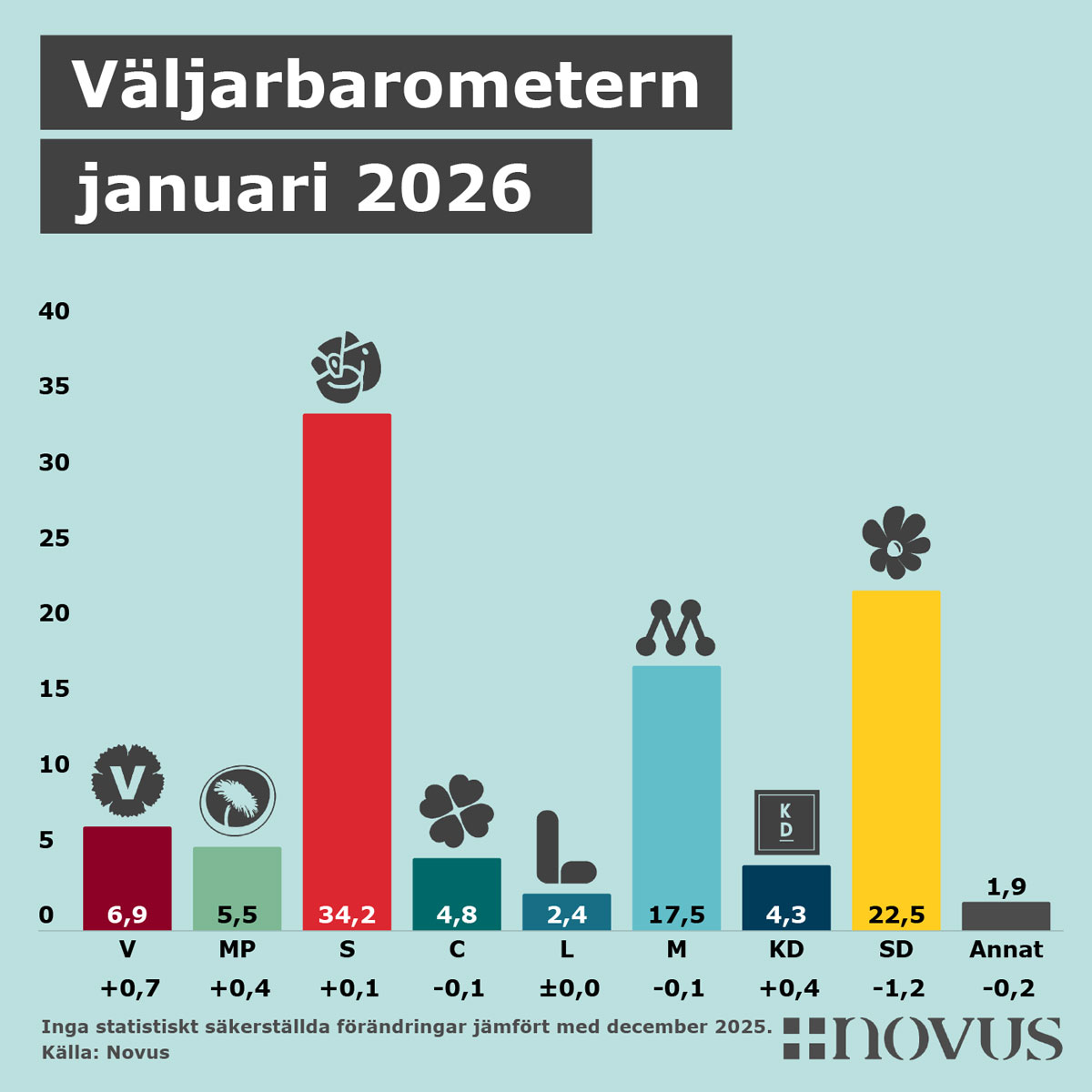 Klicka på bilden för analys av Novus Väljarbarometer för januari 2026.