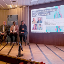 Medverkande i panelsamtalet: Aina Jutterström, redaktionschef, TV4, Göran Arrius, ordförande, Saco, Binette Seck, Social Entrepreneurship Tech, Education & Community Impact, Therese Svanström, ordförande, TCO. Samtalet leds av: Torbjörn Sjöström och Jan Scherman.