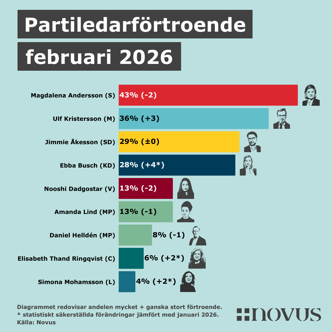 Ta del av partiledarförtroendet för februari 2026 här…