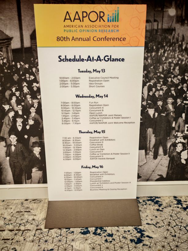 AAPOR vad den stora delen, där ca 1000 deltagare från främst USA var med på den konferensen. Kontrasten från ”lilla” WAPOR och ”stora” AAPOR var slående för de av oss som var inbjudna som talare till båda. Jösses vad mycket folk!