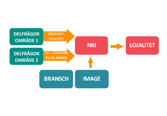 Valet av övergripande mått, såsom CSI eller lojalitetsindex, är utgångspunkten. Hela modellen är uppbyggd för att identifiera vad som kan göras för att förbättra det mått eller index som ni faktiskt vill uppnå.