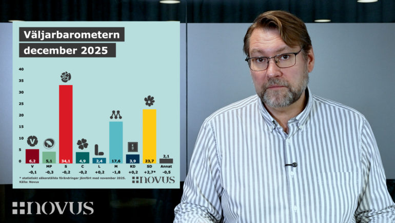 Novus VD Torbjörn Sjöström presenterar här väljarbarometern för december 2025: